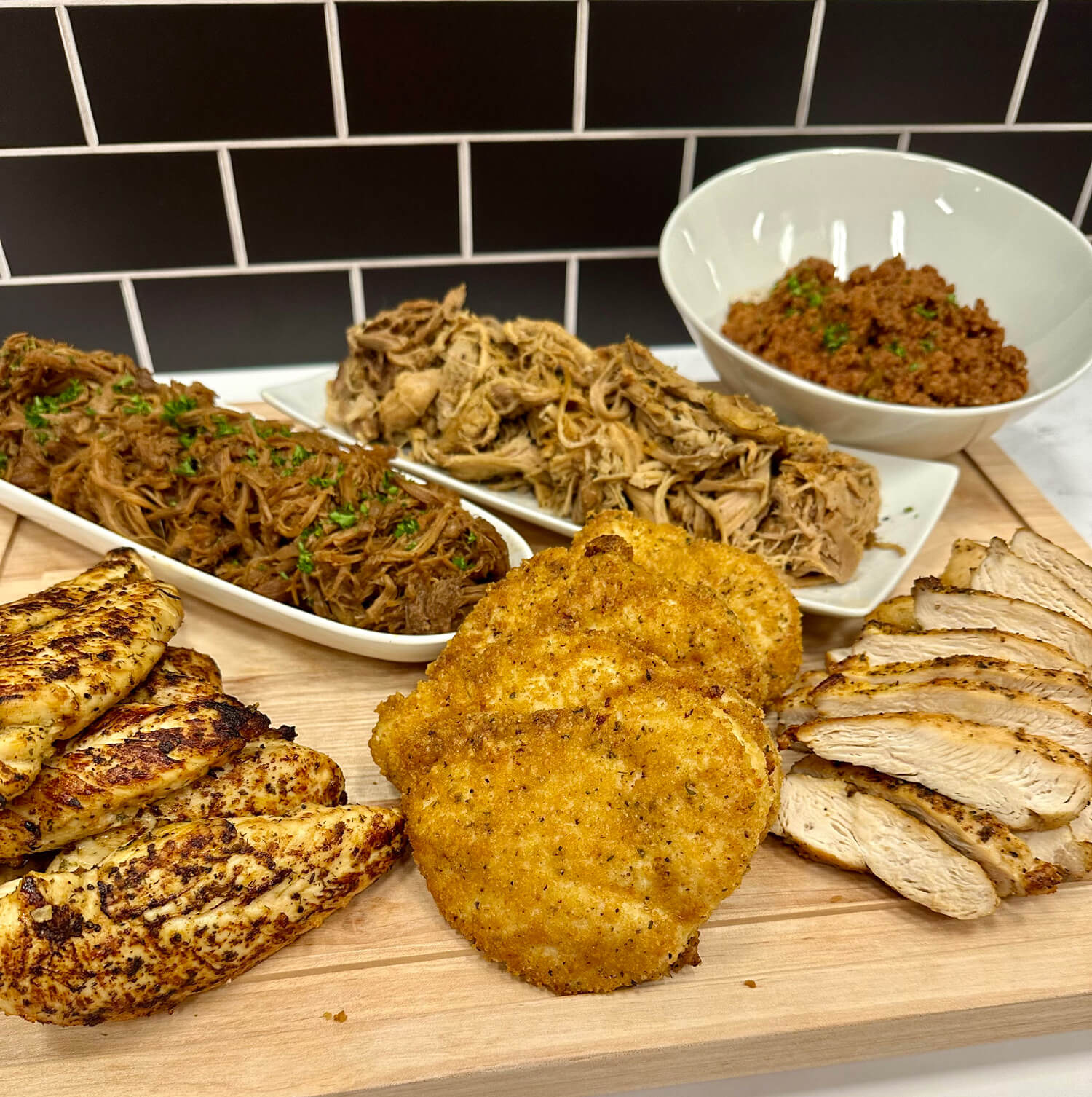 A generous mix of chef-cooked proteins designed to build real meals.